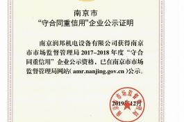 2020年2月26日,接到南京市企業(yè)信用管理協(xié)會(huì)通知,南京潤(rùn)邦機(jī)電設(shè)備有限公司再次通過(guò)2017-2018年度市級(jí)“守合同重信用”企業(yè)的認(rèn)定。誠(chéng)信潤(rùn)邦,傾心服務(wù)。