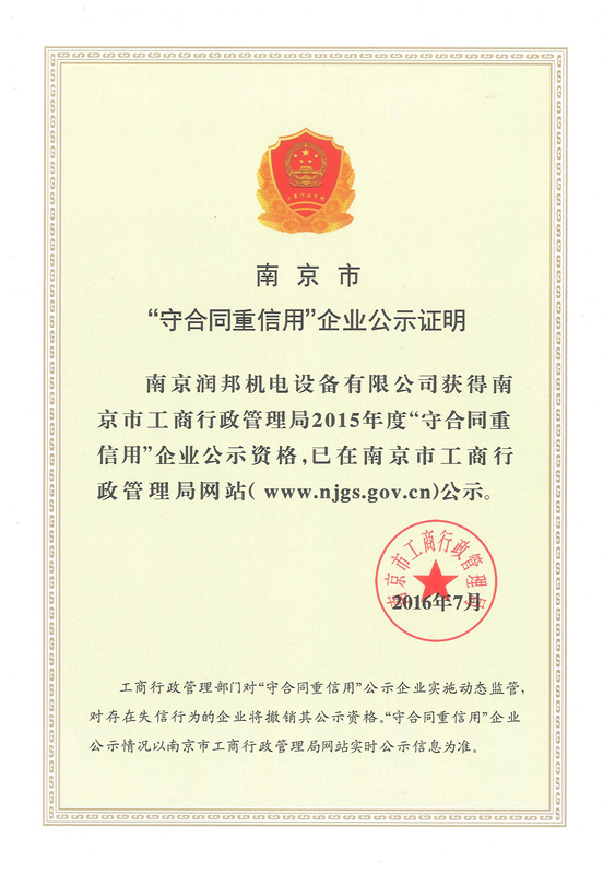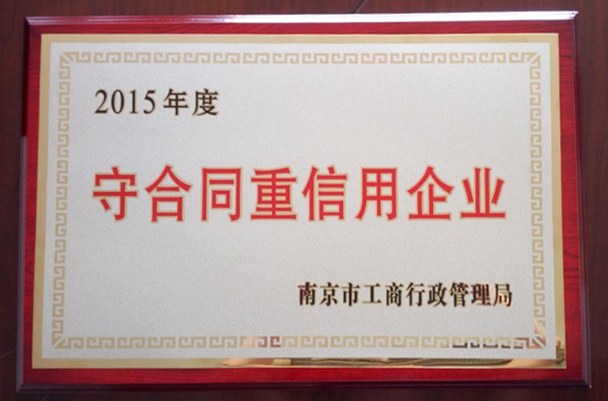 近日,接到南京市企業(yè)信用管理協(xié)會通知,我公司正式通過2015年度市級“守合同重信用”企業(yè)的認定,并予授牌和頒發(fā)證書。